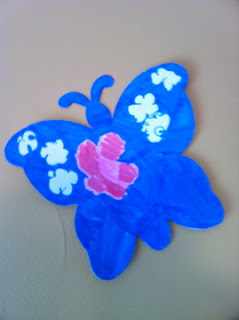 Friday was Everett's 3rd birthday so Saturday we partied down like it was 1999....or something. My little guy's favorite thing in the whole world right now is butterflies so we had the kids color butterflies and hung them up all over the house. We got him a butterfly cake, got some food and had people come over. Instant party in a box.....or something. So here's some fun pictures from his birthday party.