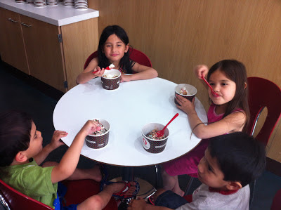 Red Mango, or something like that. I dunno, I forget already. Anyway, it's a frozen yogurt place by us. I'm not sure if it's new but we've never been there before. Last night we took the kiddos for some Red Mango. The kids loved it. Self serve frozen yogurt with tons of toppings, what's not to love? I kinda thought it was ok at best. The frozen yogurt kinda sucked but I do love toppings! So many sprinkles!
